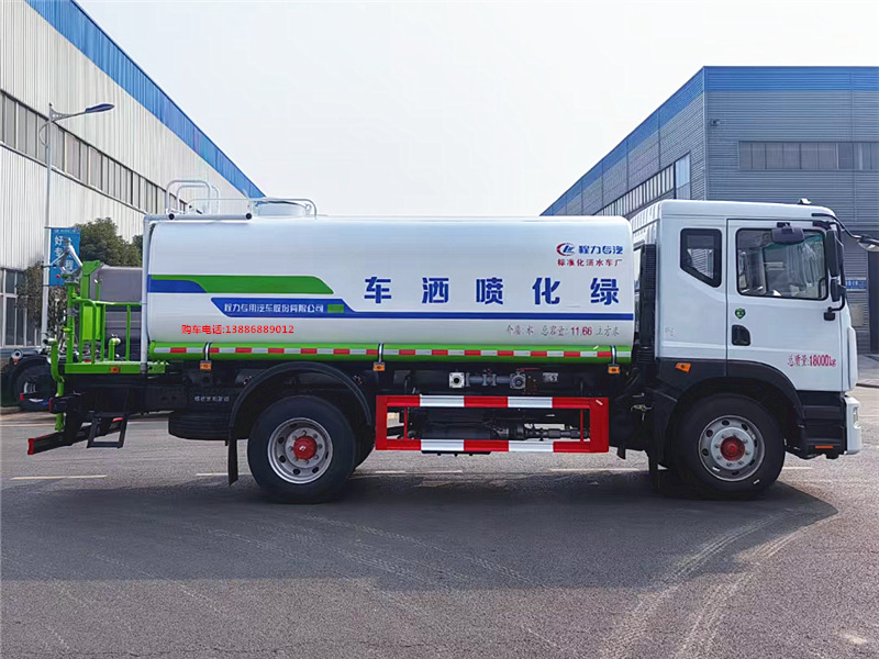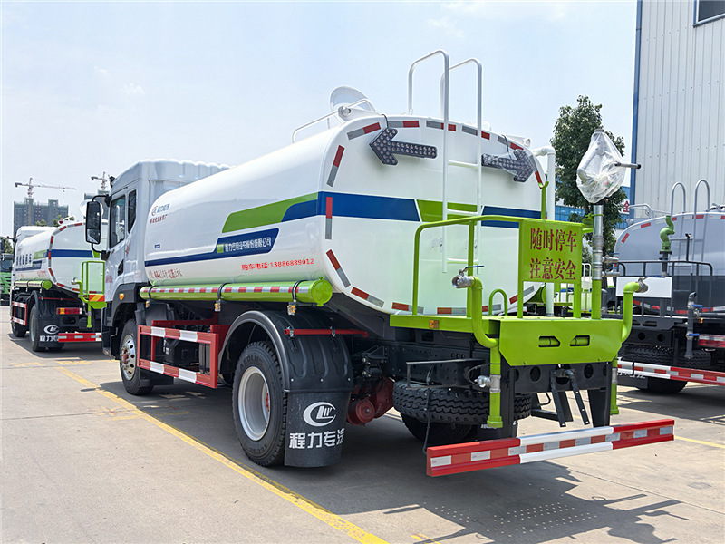 | 上裝配置:罐體采用國(guó)標(biāo)Q235碳鋼板材制作,罐體厚度4mm,前后封頭5MM加厚型,罐體容積14-15噸(14~15方),東風(fēng)多利卡灑水車質(zhì)量成熟可靠,設(shè)計(jì)先進(jìn)合理,比同類灑水泵吸程遠(yuǎn)、壓力大、使用壽命長(zhǎng),可泵進(jìn)泵出。前沖、后灑、側(cè)噴,消防栓接口,帶后工作平臺(tái)及綠化灑水高炮(可全方位旋轉(zhuǎn),可連續(xù)調(diào)成直沖狀、大雨、小雨、毛毛雨),水位計(jì),兩根等長(zhǎng)輸水管,其余標(biāo)配。 |
