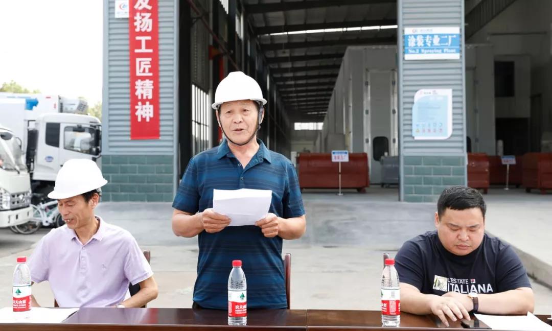專家資深檢測師彭明亮(上圖中)在會上發言,勉勵大家發揚大國工匠精神品質至上追求卓越的風格,走高質量發展之路從每一道工序做起、嚴格把好產品質量關,特別是專用汽車有其特殊性,車子上裝箱體要求抗酸雨、抗污染、抗腐蝕,油漆工藝更是重中之重,一點也馬虎不得,要求大家以競賽為契機,努力提高涂裝質量的美觀性、長效性、功能性。